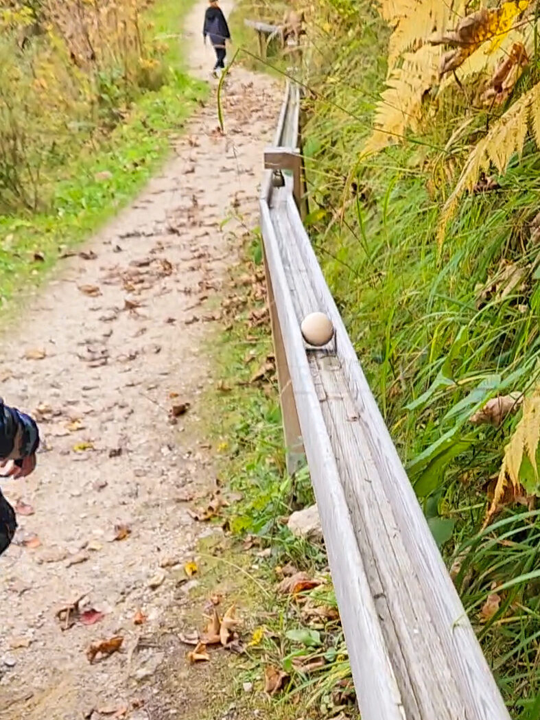 What is a kugelbahn? Simply put, it is a marble run, but usually built right into the forest. It is a clever and charming way to make sure your kids hike faster than you the whole way. They will move about the same speed as their rolling marble.