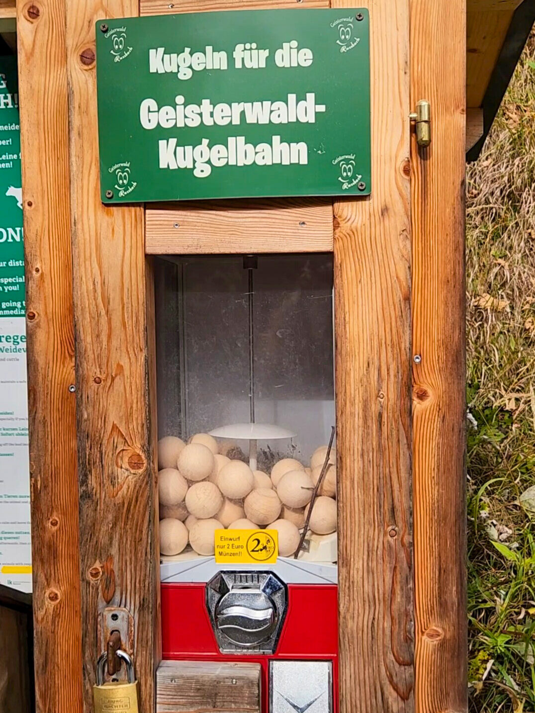 Each course begins with a spot to buy a wooden ball, called a kugel, usually for less than two Euros. You will often find gumball style machines near the trail entrance or by the route map. Not that we visit these often or anything, but we keep a few extra kugels in the glovebox just in case. They can usually be reused from one trail to another, although some trails require different sizes for the marble runs to work perfectly.