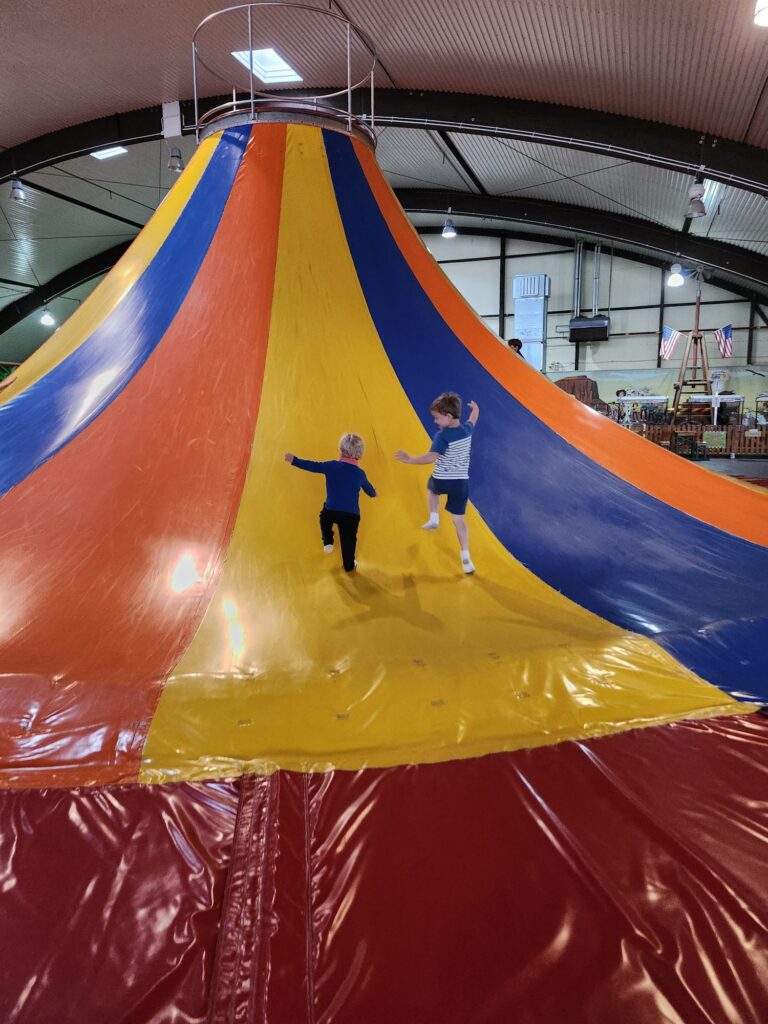 The least safe spot in my opinion? That big circular bouncy tower. Kids slid down unpredictably from the top, which made it tricky with a toddler in tow—it was basically nonstop toddler tag. But our older kids roamed independently and tried ride after ride without long waits, even though the place was crowded with birthday groups.