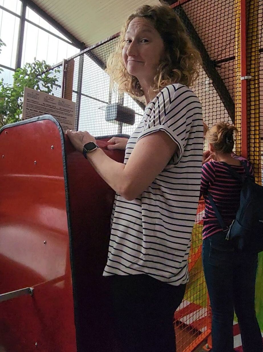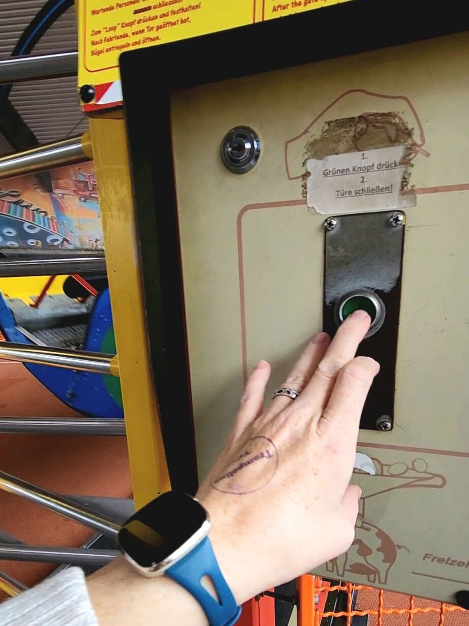 I even took a turn myself. To run the ride, you stand on a metal step to activate the controls. From there, you’re in charge: press the green button and the ride goes, press the red button or step off and it stops. A little surreal, but surprisingly efficient!